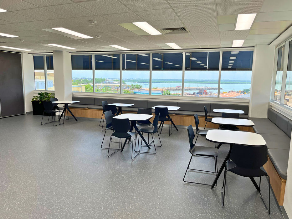 To deliver a contemporary workplace for Norstra in Darwin’s outer CBD, the fit out balances boldness and warmth through a refined material palette. Rich wood tones, deep blues and soft greys come together to create a cohesive environment that inspires productivity and supports a calm, collaborative atmosphere.